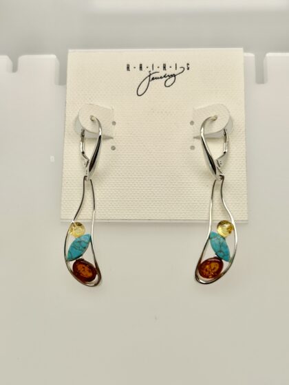 Amber, Turquoise, Coral and Quartz earrings