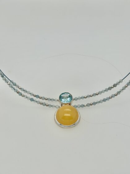 Cascading Amber, Onyx, and Bone Pendant Necklace