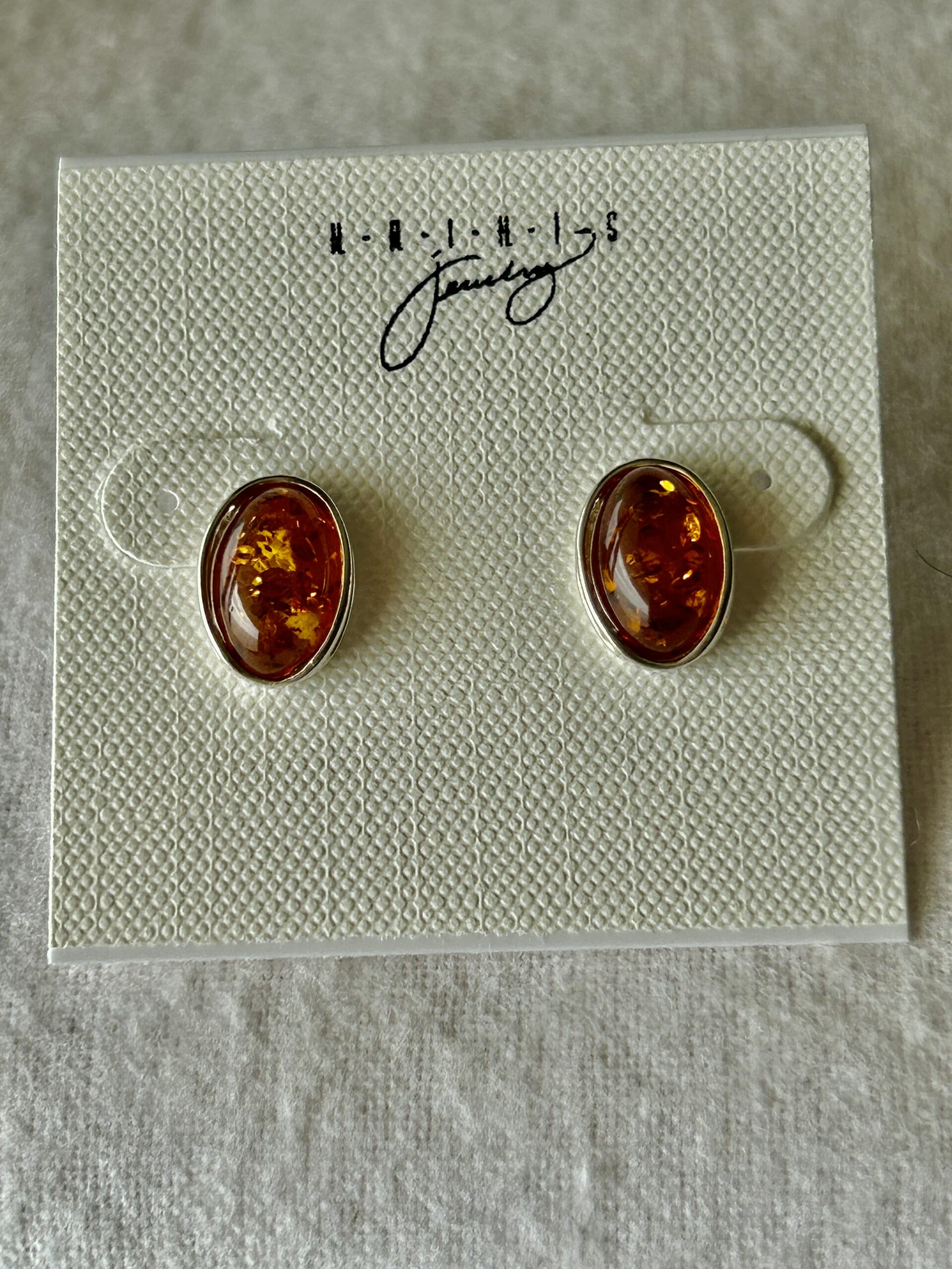 This pair of Baltic amber earrings are set in sterling silver and are approximately .50 inches long.