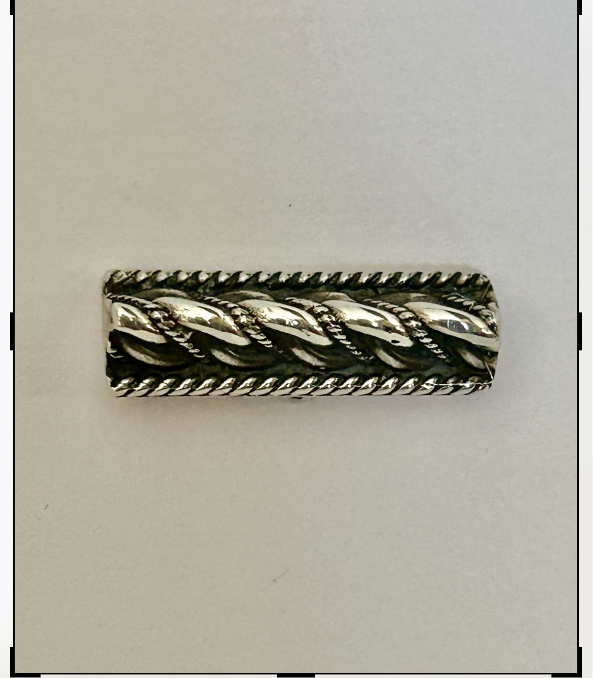 This sterling silver Namejs twist tie tack is approximately 15/16 inches long.