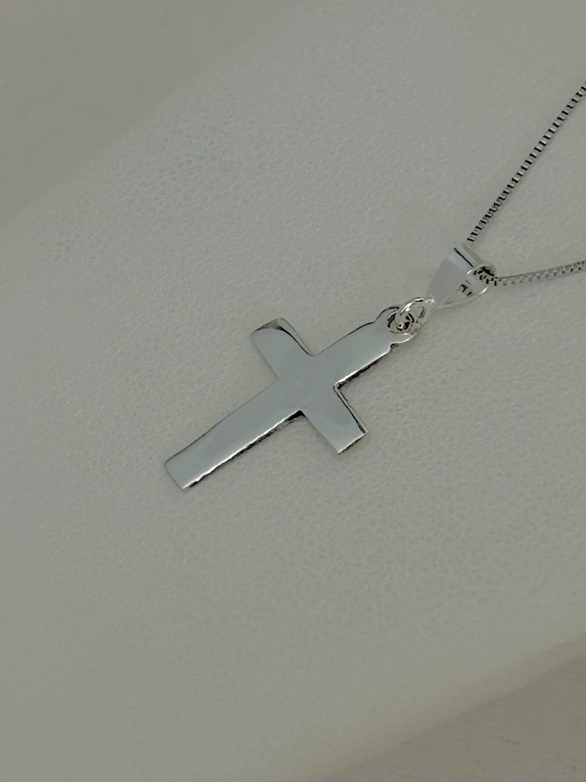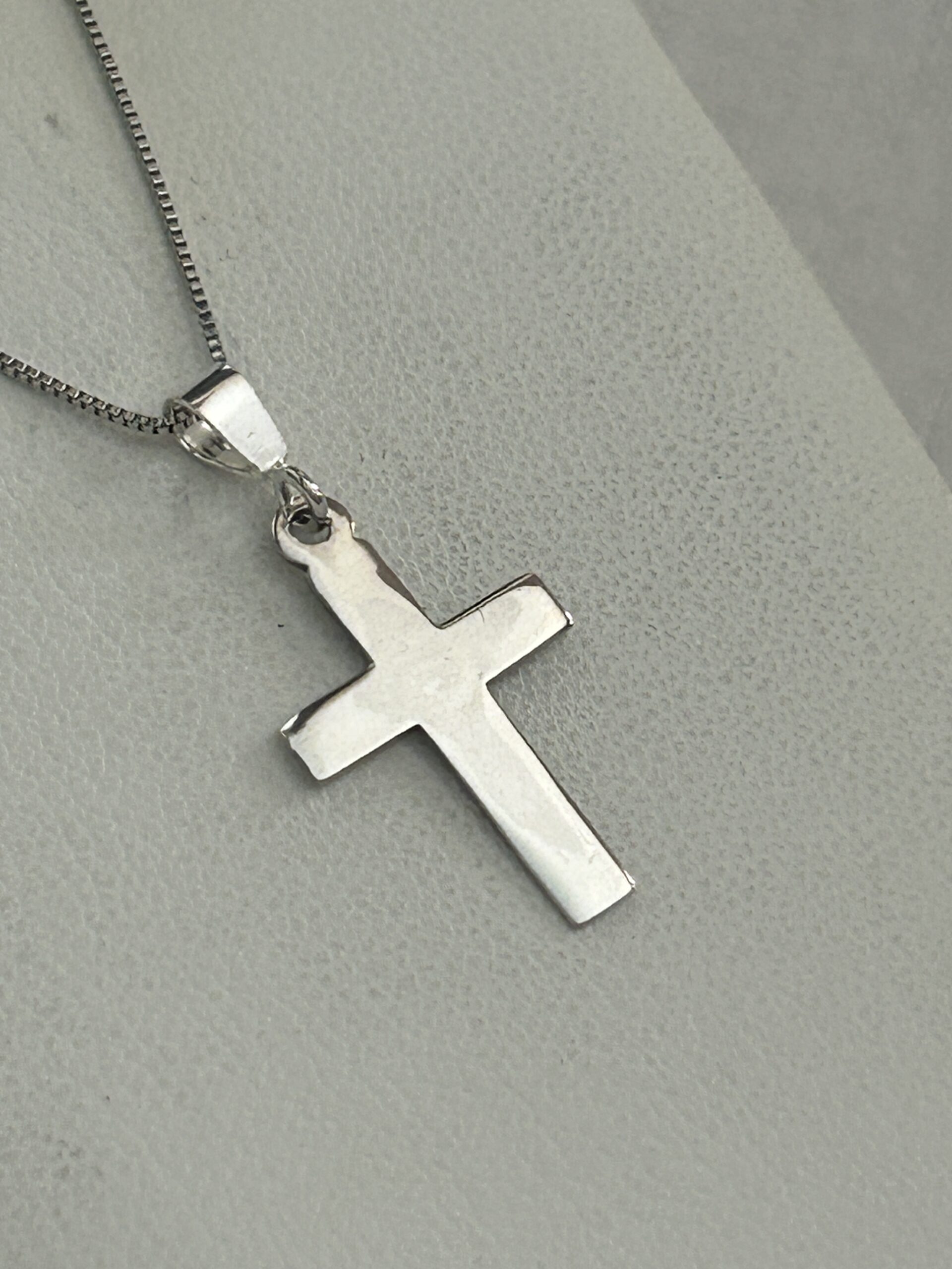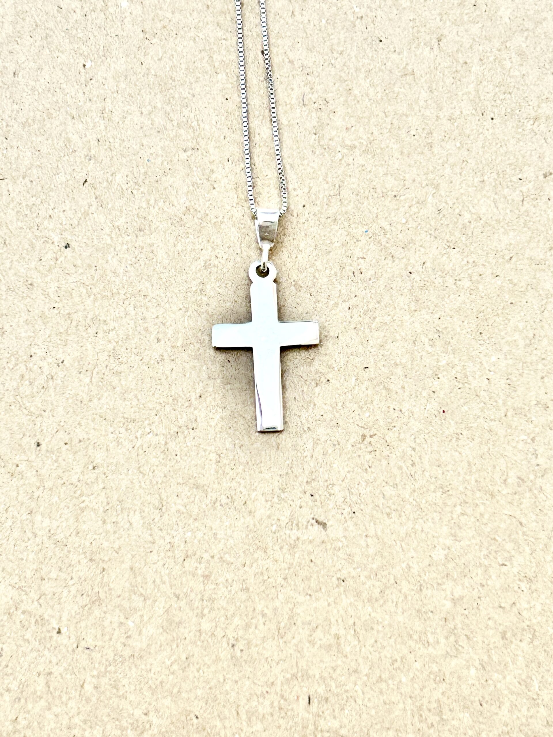 The sterling silver cross is approximately one (1) inch long including the bail.