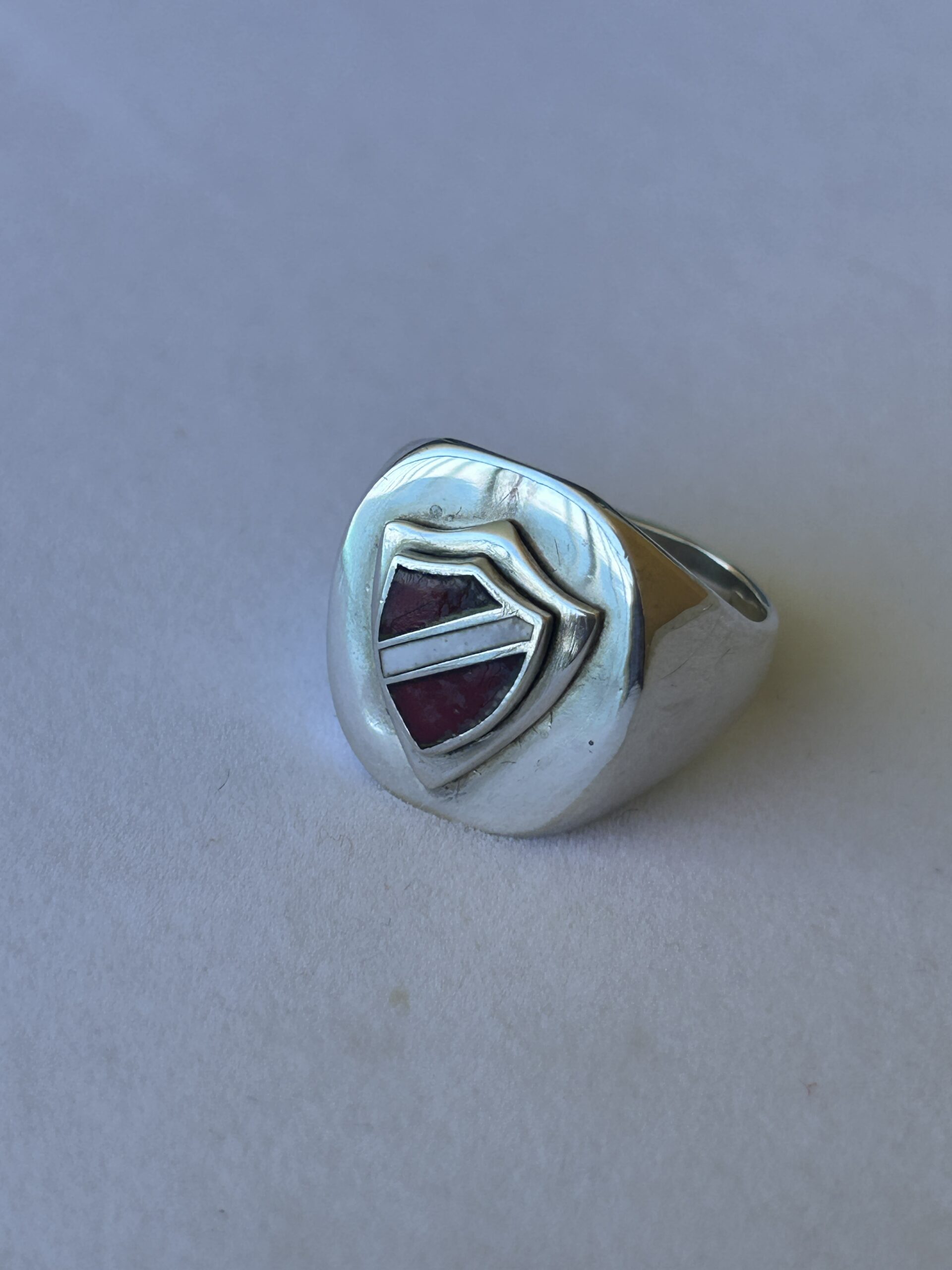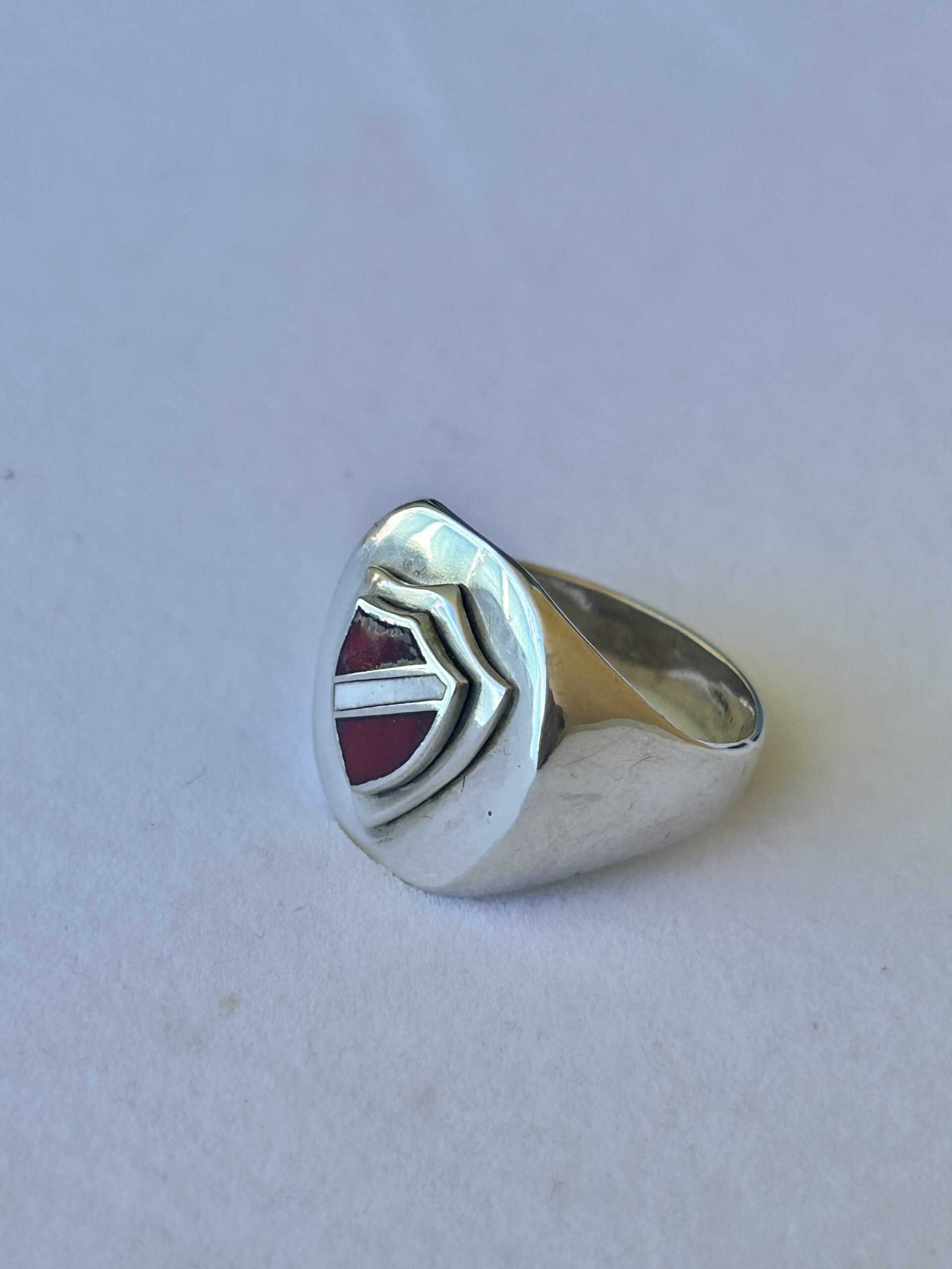 The sterling silver Vairodzins (Latvian flag colors) ring is genuine fired glass enamel. The ring is only available is size 11 at this time.