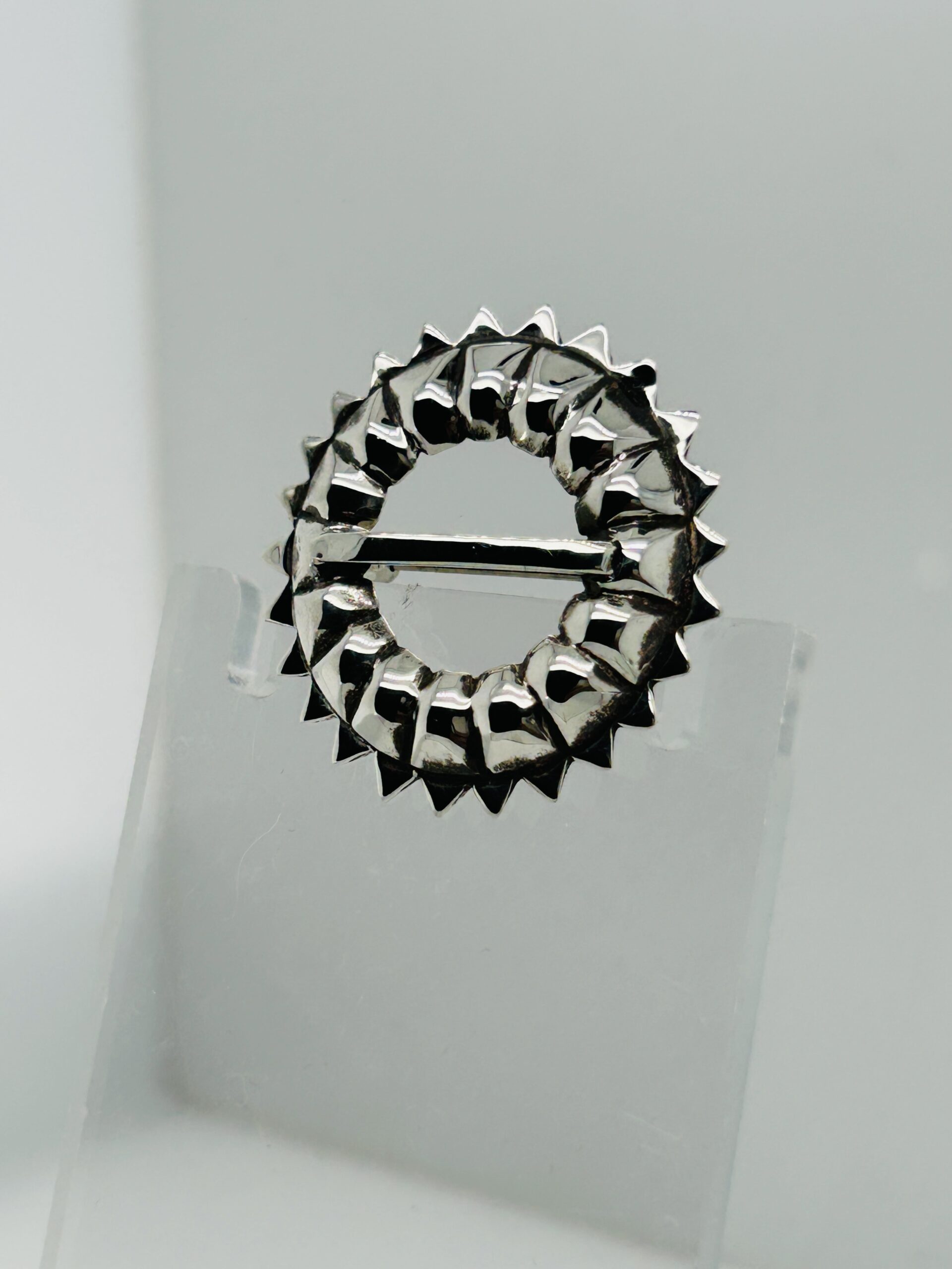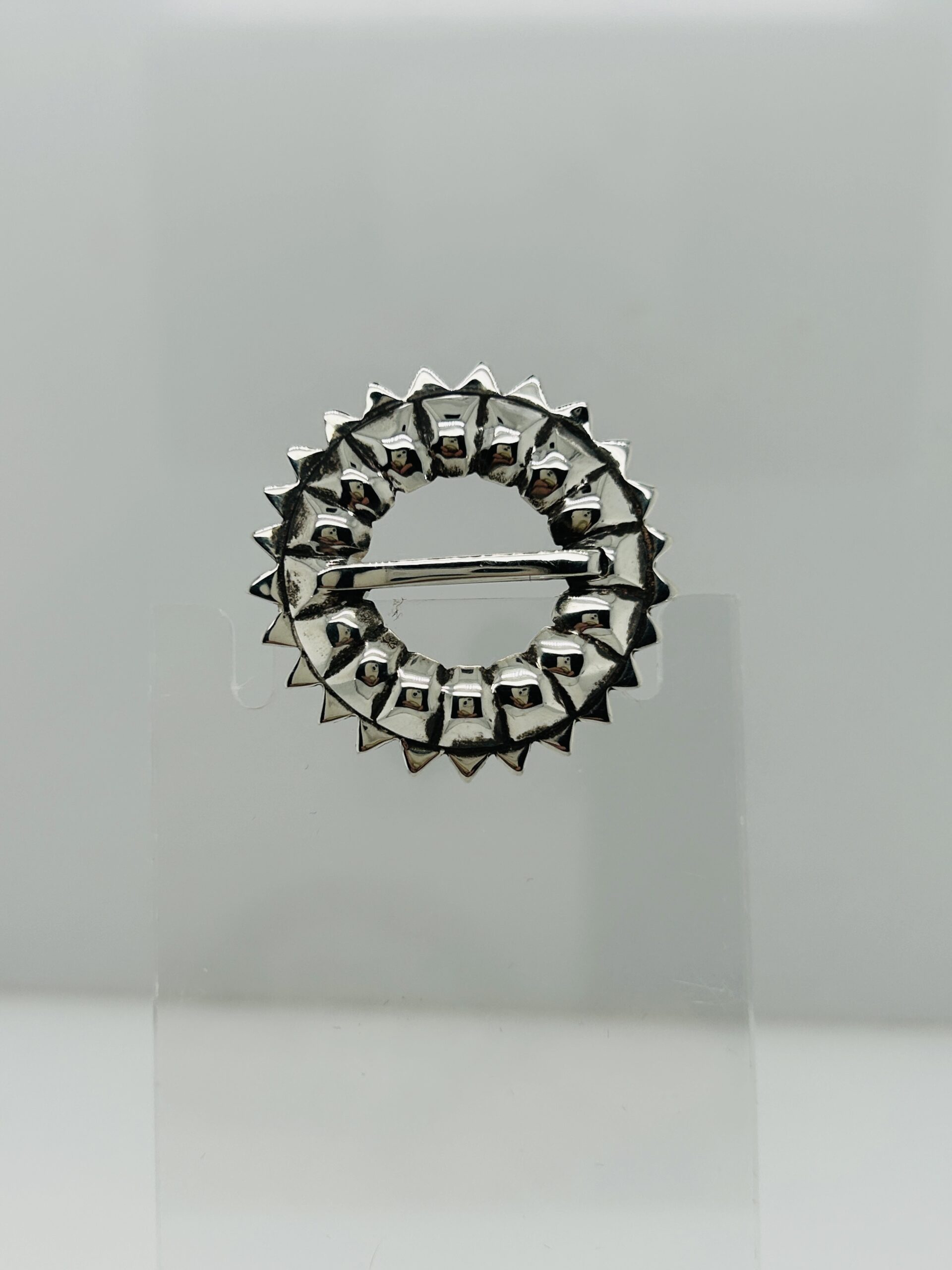 The sterling silver shirt pin depicts a sword design edge and is originally from the “Rucava” area of Latvia. Often worn with ethnic outfits but also works with our contemporary wardrobe designs.